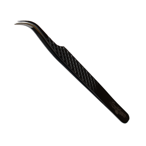 Each of our Luxury Black Plasma line pick up tweezers comes in the option of Diamond Dusted which is a finely blasted inner prong smooth finish or Mega Fiber Grip which has a unique basket weave-like texture imprinted inside the pick up prongs for those who struggle with the grip of traditional style tweezers, this new fiber grip technology gives an overall sweet spot to each tweezer, allowing them to be used with any diameter lashes seamlessly, from .03-.15.